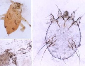 疥螨又名疥虫,是一种肉眼看不到的微小虫子。成虫肉眼可见,呈白色、半圆形、扁平形,大小约0.02—0.4毫米。在显微镜下看,疥虫外形似甲鱼,呈扁圆形,雄虫个小,常在交配后不久即死亡,雌虫较大,一般在产卵后才死亡,由虫卵发育为成虫约需10-13天。显微镜下(5x10)见到短小的腭体及呈钳形鳌肢,短粗足前后各两对,且后两对足有长毛,证明为雌性。疥虫的背部有无数横行的波状皱纹,躯干的后半部有几对杆状的刚毛和长鬃,腹部有足四对,躯干后缘中央是肛门。疥虫的腭体很小,位于躯干的前端,一半陷入躯干中,螯肢呈钳形,适宜于食用皮肤的角质蛋白。寄生于人体表皮层内。