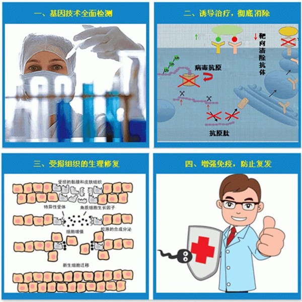 技术优势:南昌中山皮肤性病专科医院采用的"中欧五联基因免疫克毒疗法",在病毒抗体的持久存活性上做了重大改善,它注重强化抗体的“ 长效免疫应答”,治疗后,抗体可长达数 十年存活与机体内,比传统手术,激光,光动力,微波等提纯的抗体存活时间提升了近百倍。真正达到一次治愈,终生延续抗体,终生免疫,杜绝复发。
