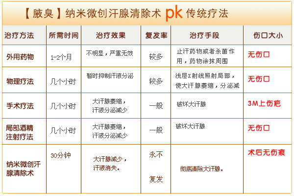 ÁÆ·¨ÓÅÊÆ£º“ÄÉÃ×΢´´º¹ÏÙÇå³ýÊõ”¿É´Ó¸ù±¾ÉÏÐÔÇå³ý²úÉúÒìζµÄ´óº¹ÏÙ£¬¸Ä±äÁËÖÎÁÆÒ¸³ôµÄ´«Í³ÖÎÁÆÆÆ»µ´óÈÝÒ׸´·¢µÄÄѵ㡣ÒòΪËü°²È«¡¢¿É¿¿¡¢ÎÞÍ´¡¢²»¸Ä±äƤ·ôÍâ¹Û£¬±£Ö¤ÖÎÁÆÐ§¹û¡£¶Ô¾¼¤¹â¡¢ÊÖÊõ¡¢Íâ²ÁÒ©¡¢µçÀë×ÓÉÕׯ¡¢Ó²»¯¼Á×¢ÉäµÈÖÎÁÆÊ§°ÜÕߣ¬ÖÎÁƸüÓÐЧ£¬ÁÙ´²¶àÄêËæ·Ã¼°ÒÅ´«»¼Õßδ¼û¸´·¢£¬ÊÇĿǰÖÎÁÆÒ¸³ôµÄÀíÏë·½·¨¡£>>>µã»÷»ñµÃר¼Ò×Éѯ·þÎñ<<<