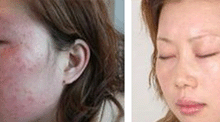 患者李某,女,26岁,南昌市东湖人.面部密布褐色扁平丘疹五年,曾于多家医院就诊,均诊断为"扁平疣",中药、西药都用过了,病情不见好转,反而逐渐加重.到南昌中山皮肤病医院就诊,给予"中药无痕去疣疗法“治疗,经过治疗后,面部疣体全部脱落,仅留有原疣体部色素斑.患者直呼神奇。