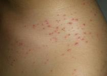 病症:患者上前胸出现一些红色小丘疹,散在,单生长,不痛微痒,个别呈囊性小脓疱。患者先后口服四环素、红霉素、甘草锌片等治疗,病情未见好转。皮疹逐渐向胸部四周扩展,受热时偶有轻度瘙痒。 治疗:患者来我院就诊时,丘疹已扩散至整个上胸,有进一步发展的趋势,医生根据其情况,先给患者稳定病情,之后经过系统的检查诊断,对患者实施了“中西医结合平衡疗法”,治疗后胸腔部的小丘疹逐渐退去,目前患者已康复。 专家建议:毛囊炎治疗要选择正规专业的权威医院,不要乱投医,盲用药。 |
