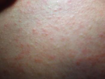 第三:红疹子 这是皮肤过敏的典型症状,刚开始是脸颊上或者是额头上出现一些红疹子,但是慢慢的红疹子会增加,最后蔓延到整个脸部。