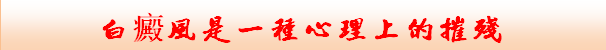2、心理危害:白癜风的危害还表现在对患者心理的影响方面,由于受白癜风所累患者的容貌改变很大,造成白癜风患者很大的心理压力,轻易使患者出现敏感、抑郁、焦虑等消极的情绪和心态。白癜风患者接触的人愈多,对周围人看自己的态度就越是在意,外人的歧视和误解严重打击着青少年的自尊心和自自信,时间久了很轻易是青少年白癜风患者对学习和生活都失去信心。