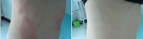 第一个疗程:采用“中西医联合脱敏疗法”对张超身上的荨麻疹进行药物脱敏治疗后,张超身上的荨麻疹开始慢慢消退,皮肤也不痒了;