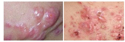 3.ÉÙÊý»¼ÕßÓÐÑ×ÐÔ½á½Ú»òÄÒÖ×£ºÉÙÊýÑÏÖØ»¼Õߣ¬³ýºÚÍ··Û´Ì¡¢ÇðÕŧðåÍ⣬ÉпɼûÓв϶¹ÖÁÖ¸¼×´óµÄÑ×ÐÔ½á½Ú»òÄÒÖס£ÄÒÖ×ÐÔ×ù´¯ÐγɶàÊý´óС²»µÈµÄƤ֬ÏÙÄÒÖ×£¬³£¼Ì·¢»¯Å§¸ÐȾ£¬ÆÆÀ£Á÷ŧ£¬ÐγÉñ¼µÀ¼°°ÌºÛ¡£