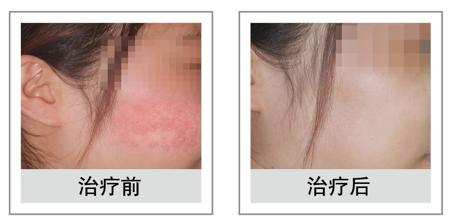 【患者资料】:李小姐,23岁,南昌师范学院大三学生,一碰到花粉就会在脸部皮肤出现红斑,皮肤变得凹凸不平,而且皮肤很干燥。如果被头发碰到或者被水溅到会更加痒。经过诊断发现是花粉过敏,经过多加医院治疗都没有获得好的效果。