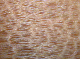 主述:有10年的疾病史,四肢腹部臀部干燥粗糙,呈淡褐色至深褐色;大量菱形或多角形鳞屑附着于皮肤,无明显不适症状,偶有瘙痒。 检查诊断:为其进行检查,诊断为寻常型鱼鳞病中度。 |