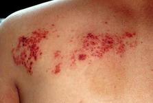 接触性皮炎:该症状是指人体接触某种物质后,在皮肤或粘膜上因过敏或强烈刺激而发生的一种炎症。多数急性发作,如反复接触,可演变成慢性。中医学根据接触物的不同,而分别命名,如“马桶癣”、“漆疮”、“膏药风”、“粉花疮”等。其发生原因可分为原发性刺激和变态反应两种。临床表现为红斑、水疱、大疱甚至坏死等,病程有自限性。