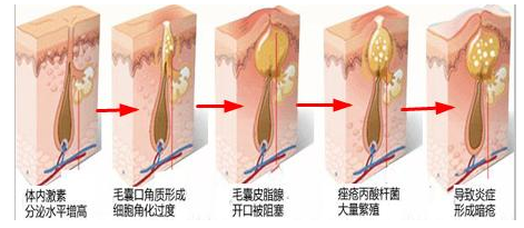 ȨÍþƤ·ô²¡×¨¼ÒÖ¸³ö£¬¶»Ó¡µÄÐγɶàÊÇÓÉÓÚÓ͹âÂúÃæ£¬ÓÍÖ¬¹ý¶à → ë¿×´Ö´ó/¶ÂÈû → Ƥ֬ÏÙ·ÖÃÚÓÍÖ¬ →½ÇÖʲãÔöºñ£¬ÓÍÖ¬½¥ÍùƤ²ã±íÃæÂ¡Æð →½ÇÖʲã¡Æð£¬ÓÍÖ¬¶ÂÈûë¿×£¬Â¡ÆðµÄ¶¥µãÑõ»¯±ä³ÉºÚÉ« → ϸ¾úÔÚë¿×ÀïºÍÓÍÖ¬½ÁºÍÔÚÒ»Æð → ¶»Ó¡±ûËá¸Ë¾úÔÚȱÑõÇé¿öÏ´óÁ¿·±Ö³ → µ¼ÖÂÑ×֢ϸ¾úÇÖÈ룬±ä³Éŧðå¡¢½á½Ú → Õû¸öëÄÒ±äºì¡¢·¢Ñ× → ϸ¾úÀ©É¢µ½¸½½üµÄƤ·ô×éÖ¯£¬±äµÃ¸ü´ó£¬½ø¶øÐγɶ»Ó¡¡£