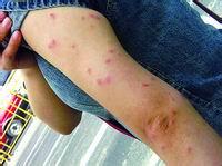 虫咬性皮炎多发生在夏秋季节,好发于暴露部位。皮损为丘疹、风团或瘀点,亦可发生红斑、丘疱疹或水疱,皮损中心常有刺吮点,散在分布或数个成群。自觉奇痒、灼痛,一般无全身不适,重症者可有恶寒发热、头痛、乳房闷等全身中毒症状。