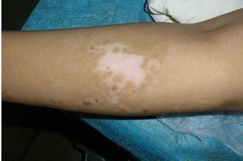 我院袁教授诊断病情后,针对黄先生的病况,采用PRD补骨脂修复术治疗,经过一次细胞移植手术,黄先生手臂白斑就变了色,两个疗袁后,他手上的白斑也消退了,初步恢复后黄先生又进行了巩固治疗现已痊愈,两年来都未复发。