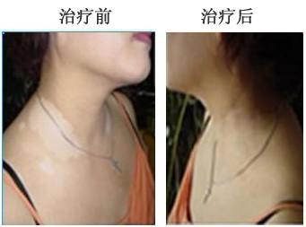 病情描述:手指、颈部皆大面积白斑,皮损严重,尤其是面部直接影响了她的心理健康,平时不愿意社会交往,自卑、孤独、封闭,思想压力重、沉没寡言。