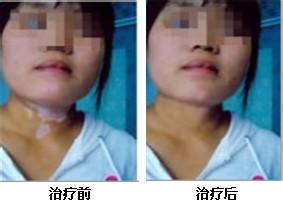疾病主诉:患病4年,先从左脸是出现白斑,起初没有在意,后病变部位扩散至额头部不规则片状白斑。为了治病,他先后去过九江、广州、北京等地,而且几乎花去全部积蓄都徒劳无功。
