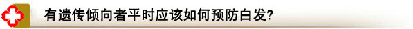 提到遗传,一般人首先想到的就是先天性,是无法治疗的,因此很多人放弃了对遗传性白发的治疗。临床发现,遗传性白发患者尚未生育的,在其白发通过中医治疗获得痊愈后,后生育的子女 其白发的遗传特征不明显;此外,在具有白发遗传特性的对象中,白发出现的早晚与速度也与该人的体质关系密切。上述证据充分说明,虽然说遗传性白发是白发疾病中最难根除的一种,但是患者只要有 耐心,遗传性白发并非无药可医。点击咨询,听名老中医讲解如何治疗遗传性白发点击咨询专家按钮