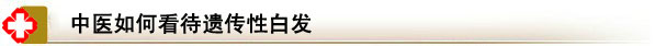 中医认为遗传性白发是由于患者禀赋不足,同时遇到肾阴亏损、营血虚热或肝郁气滞等情况,最终导致白发出现。因此治疗时多采用“宜滋肾阴、益精血、乌须发”、“凉血清 热、滋阴乌发”或“疏肝解郁、清热凉血”的方法进行治疗。由于白发患者一般无自觉症状,所以需要临床经验特别丰富的医生通过精确辨证方可最终确诊。