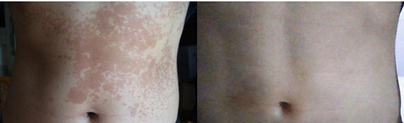 陈先生,30岁,南昌青山湖区人,患花斑癣有5年了,在胸、背、腋窝、腹部、上臂、大腿上部等部位出现色素沉着或/和色素减退斑,有点状、钱币状或融合成片, 上面有细碎糠状鳞屑,颜色如灰白色、淡黄色,给他的生活工作带来了很大的影响与危害。孙先生曾经在一些大医院进行治疗,治疗初期效果不错,但是没过多久又 开始出现复发的情况,而且症状也传染到了别的地方,然孙先生痛苦不堪。后来经过朋友介绍,知道南昌中山皮肤病医院治疗花斑癣的效果很好,所以抱着试一 试的心态来治疗。