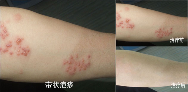 黄女士带状疱疹治疗前后对比图(咨询专家,她是怎么治好的)