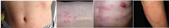 南昌中山皮肤病医院专家介绍,荨麻疹的初期症状表现为风疹块扁平发红或是淡黄或苍白的水肿性斑,而边缘有红晕。有时,风疹块呈环形可称环状荨麻疹,几个相邻的环形损害可以相接或融合而成地图状,可称为图形荨麻疹。有时,损害中央有淤点,可称为出血性荨麻疹,肾脏及胃肠可以同时出血,风疹块中有水疱时称为水疱性荨麻疹。