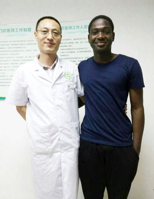 后来经过网络了解南昌中山皮肤病医院治疗湿疹的效果还不错,于是便前来治疗,湿疹专家张文波主任接待了她,经过详细了解后,非洲姑娘患的是慢性湿疹,还好患病时间不是特别长,于是张文波主任为非洲姑娘采用我院“3T通调中西结合疗法””为她治疗,该疗法采用的是内疗和外治相互作用的方法互作用的方法,共同把过敏原彻底清除,降低血液的血热血燥,恢复肌体正常的血液循环的优势。治疗近半个月的时间,非洲姑娘就明显的感觉到湿疹、皮疹慢慢消失,瘙痒症状也得到了明显缓解,睡眠质量也上去了。这不,今天还特意要求和张主任合影,以表感谢。