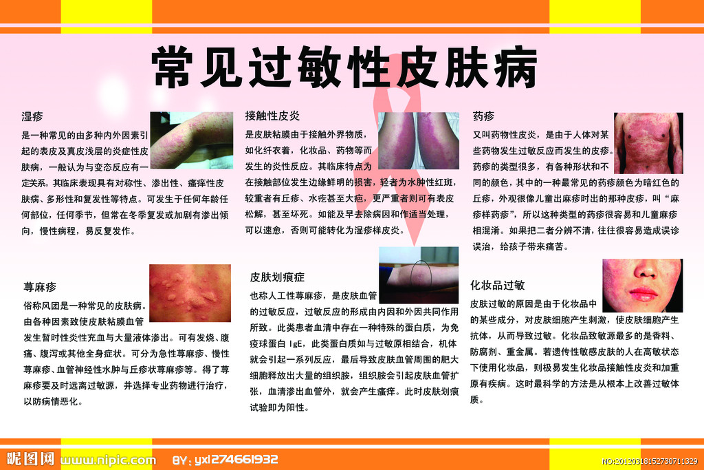 最后专家提醒:由于每个人的病症都不一样,而且同种症状常有多种皮肤病的可能性,所以,在不明病因的情况下,特别是过敏性皮肤疾病,更应及时的进行过敏源检测,为确认病症做好依据。也好让医生根据病症对症下药,早日还你健康身体。