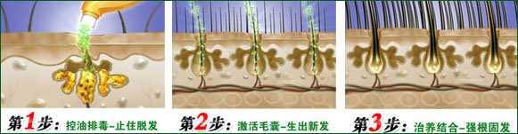 中医认为肝肾受损、精血双亏、脏腑失调等导致毛囊休眠是脱发的根本原因,即由于皮脂腺分泌过多、毛囊毒素淤积、毛囊营养供应不足等导致毛囊休眠。因此“中医激活疗法”首先通过平衡油脂分泌,清除毛囊中的毒素,迅速止住脱发。